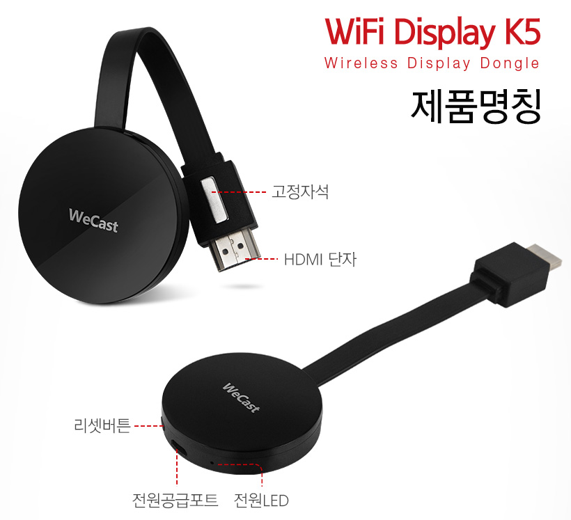 위캐스트 무선 미러링 MHL 동글 WIFI DISPLAY K5 듀얼코어 A7 1.2Ghz 미라캐스트