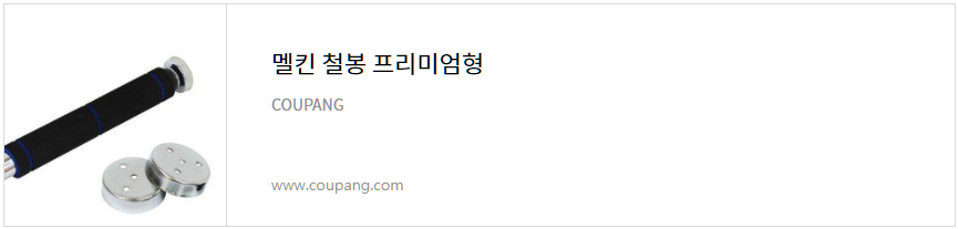 아래 배너를 클릭하시면 이 제품을 쿠팡에서 9,300원에 구매하실 수 있습니다. 대형 턱걸이 기구들에 비하면 굉장히 합리적인 가격에 구매할 수 있기 때문에, 홈트를 하시려는 분들이라면 꼭 구매하시는 것을 추천드립니다.